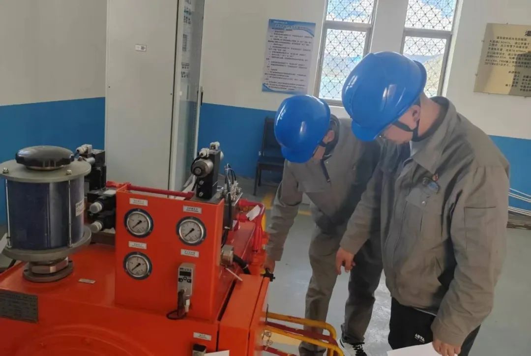 旁多水利樞紐工作人員進(jìn)行閘門操作。