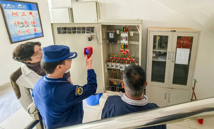 檢查現(xiàn)場(chǎng):配電箱電氣線(xiàn)路溫度測(cè)試。