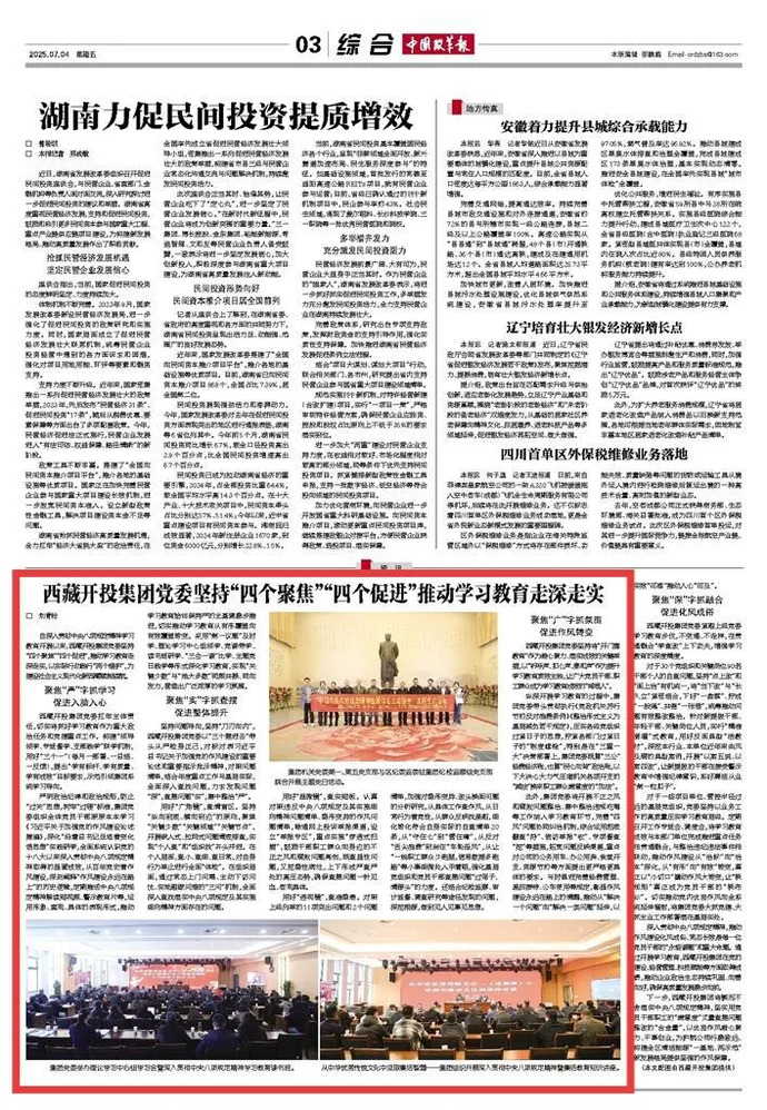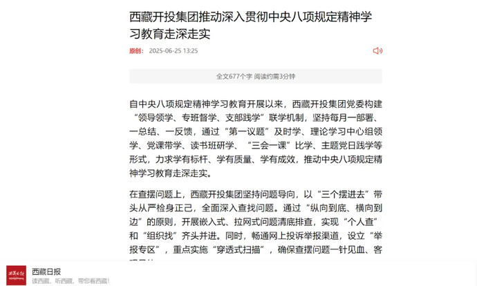 媒體報道丨《西藏開投集團黨委堅持“四個聚焦”“四個促進(jìn)”推動學(xué)習(xí)教育走深走實》