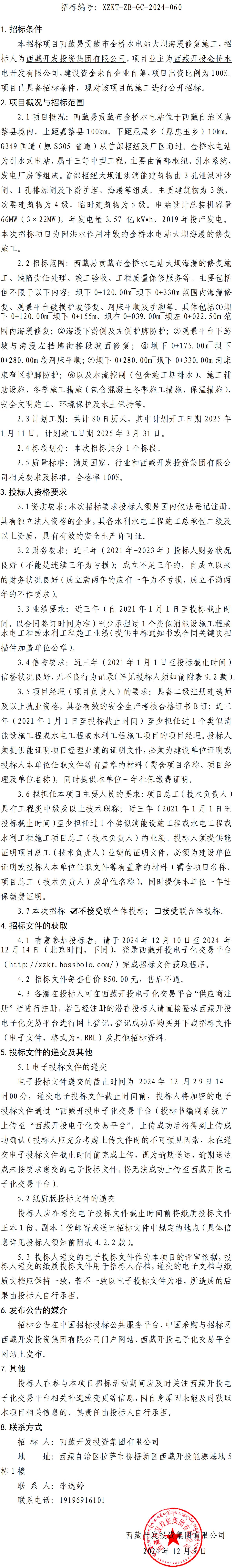 西藏易貢藏布金橋水電站大壩海漫修復(fù)施工招標(biāo)公告